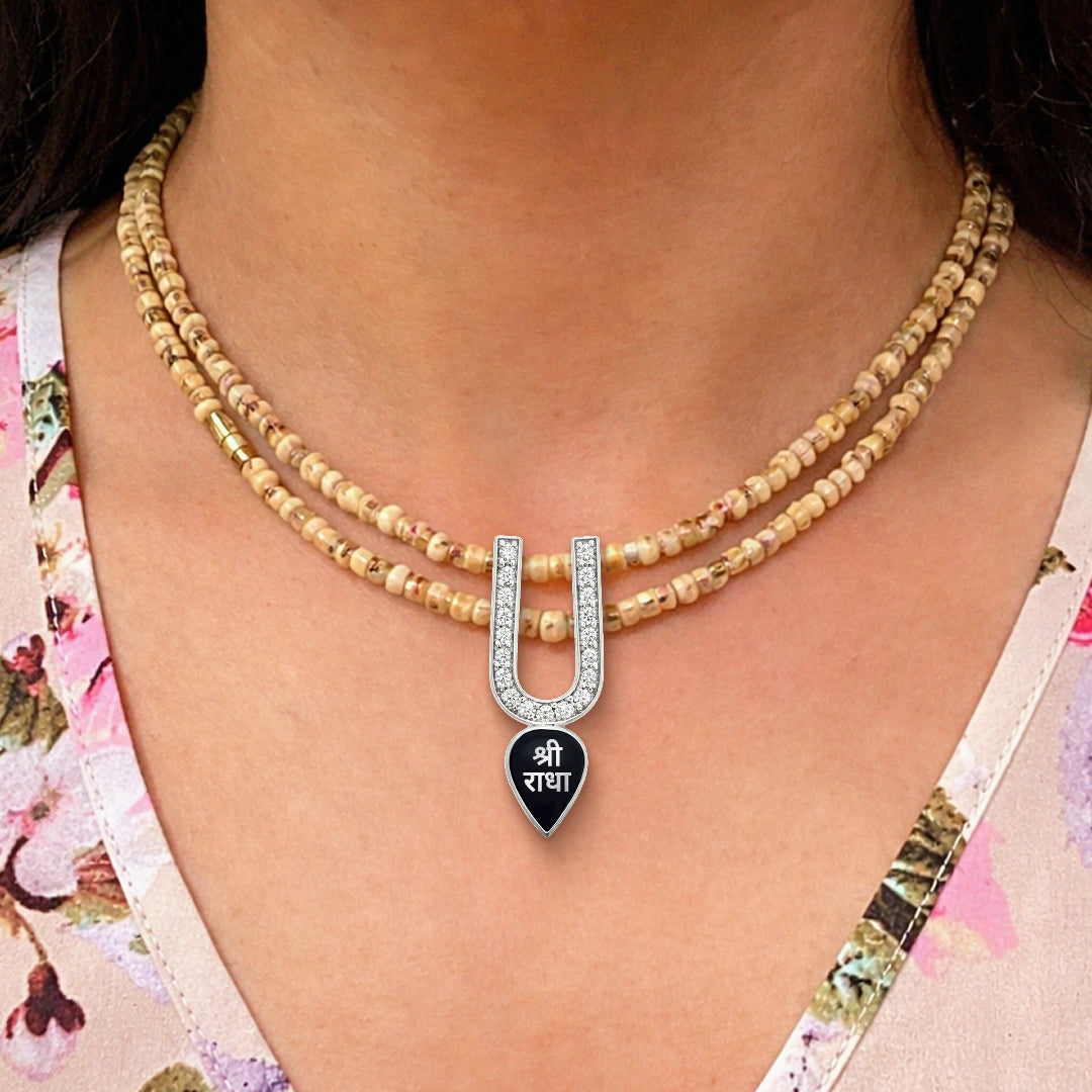 This pendant features a premium stone-studded design with the sacred "श्री राधा" engraving, symbolizing devotion, love, and positivity 🙏
